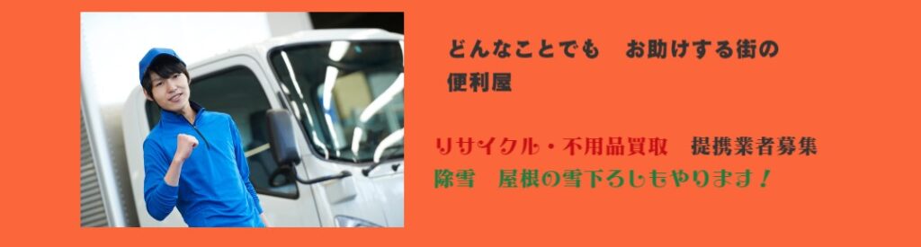 | サービス内容 | 不用品回収/片付け/引越し/草刈り・伐採 /除雪等 |
