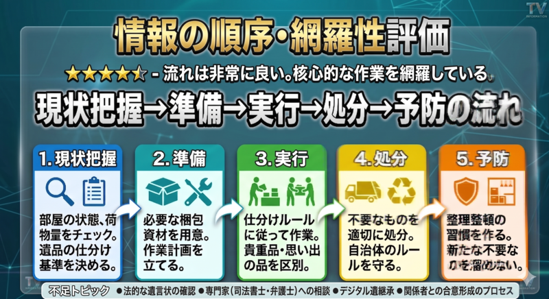 ここでは全体像として何が出てくるのか、どの順序で片付ければ効率的か、DIYと業者依頼の使い分けなど大まかなフローを示します。